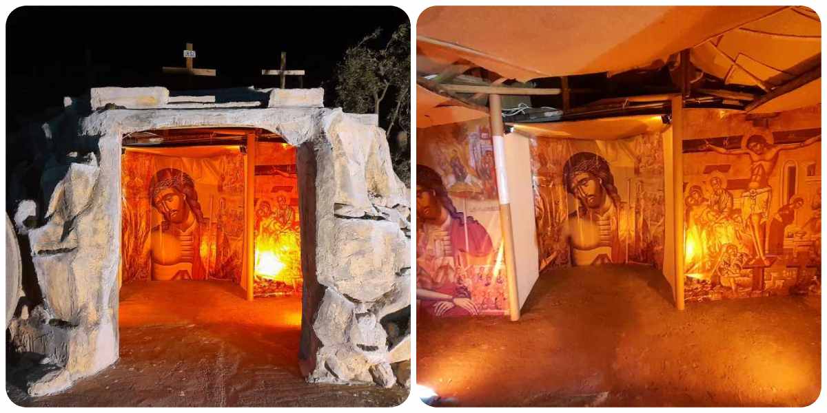 Στον ελαιώνα της Αγίας Παρασκευής στο Σιδηρόκαστρο, αναπαραστάθηκε ο τάφος του Ιησού Χριστού, που μας μεταφέρει μέσα στο κατανυκτικό κλίμα των ημερών