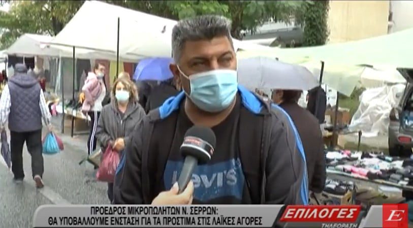 Διαμαρτύρεται ο πρόεδρος των μικροπωλητών Ν. Σερρών, Στέλιος Τζέκος, για τα πρόστιμα που επιβλήθηκαν τις προηγούμενες ημέρες σε λαϊκές αγορές της ΠΕ Σερρών, λέγοντας πως ήταν άδικο και ότι θα υποβάλουν ένσταση.