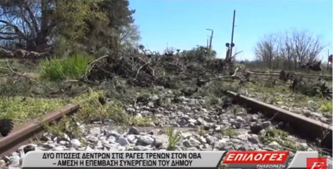 Μετά τις βροχές και τις πλημμύρες ήρθαν και οι πτώσεις δέντρων. Δύο δέντρα λοιπόν έπεσαν στην περιοχή του ΟΒΑ πίσω από τη διεύθυνση Γεωργίας και έκλεισαν τις ράγες των τρένων.