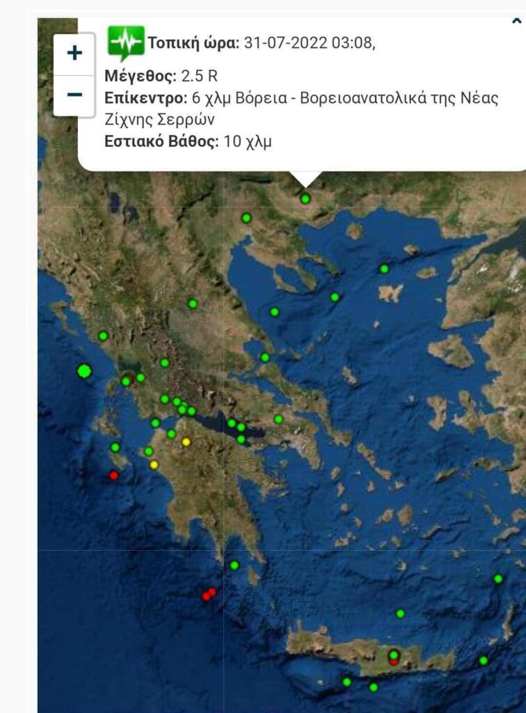 Σεισμό είχαμε σήμερα Κυριακή 31/7/2022 στις 3 τα ξημερώματα, μεγέθους 2.5 βαθμών της κλίμακας Ρίχτερ, 6 χλμ ΒΑ της Νέας Ζίχνης.