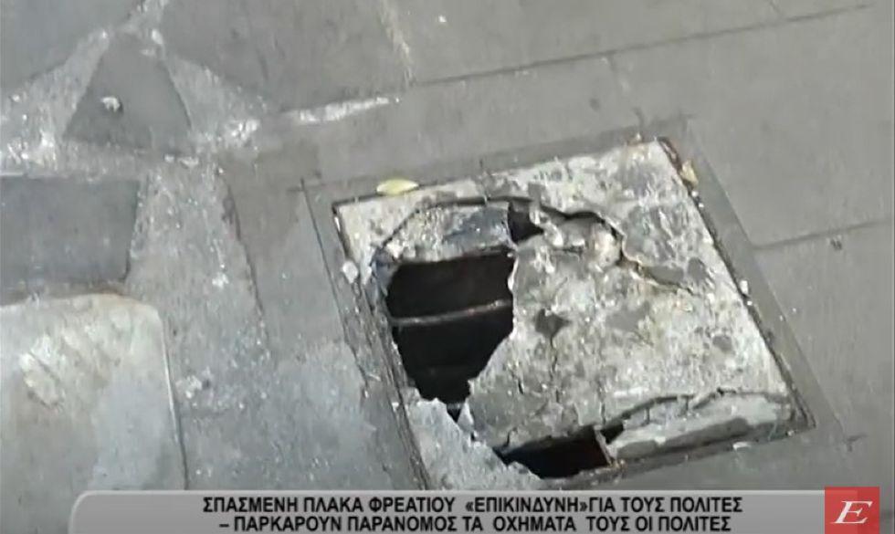Μια τρύπα άνοιξε στο πεζοδρόμιο στην οδό Εθνικής Αντίστασης όταν έσπασε καπάκι από ένα φρεάτιο, καθιστώντας το συγκεκριμένο σημείο επικίνδυνο καθώς κυκλοφορούν πολλοί πολίτες που διαμένουν στην περιοχή αλλά και από διερχόμενοι μαθητές.