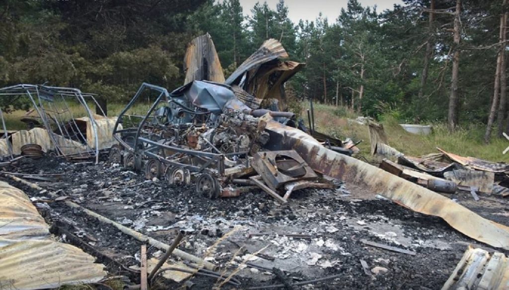 Σύμφωνα με πληροφορίες η φωτιά εκδηλώθηκε από πτώση κεραυνού και προκάλεσε μόνο υλικές ζημίες . Κάηκε ολοσχερώς η αποθήκη και καταστράφηκε το παλιό μηχάνημα Ratrack που βρισκόταν μέσα.