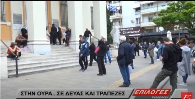 Ίδιες οι εικόνες και στα τραπεζικά καταστήματα των Σερρών. Μάσκες, γάντια και αποστάσεις.