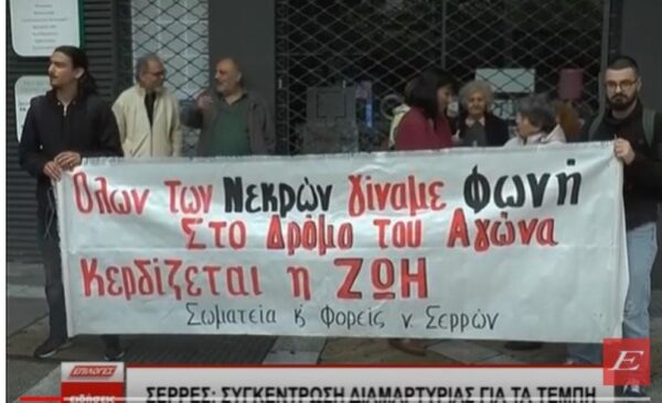 Ο “σύλλογος ατόμων πληγέντων δυστυχήματος Τεμπών 28 2 23” πραγματοποίησε σήμερα Κυριακή 14 Μαΐου στο κέντρο της πόλης των Σερρών, πορεία διαμαρτυρίας, ζητώντας την πλήρη διαλεύκανση και σε όλα τα επίπεδα των αιτιών της τραγωδίας των Τεμπών με συνθήματα και πανό.