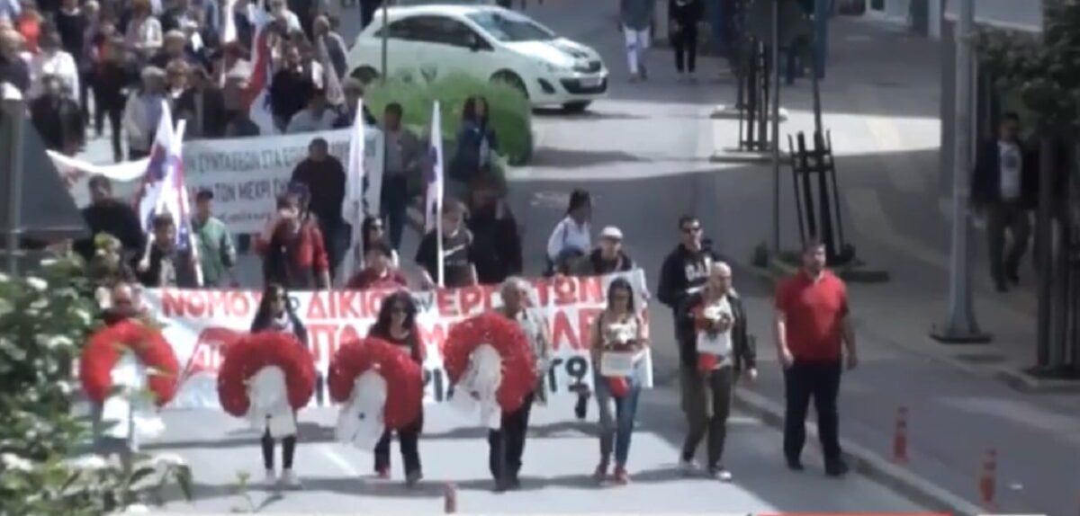 αγωνιστικά την 1η του Μάη στις Σέρρες. Η συγκέντρωση έλαβε χώρα στην Πλατεία Ελευθερίας, ενώ αμέσως μετά ακολούθησε πορεία στους κεντρικούς δρόμους της πόλης.
