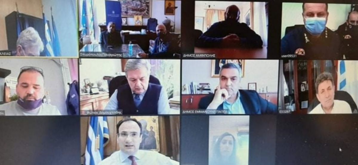 Με πρωτοβουλία του Αντιπεριφερειάρχη Παναγιώτη Σπυρόπουλου πραγματοποιήθηκε εκτάκτως, σήμερα Παρασκευή 12 Φεβρουαρίου 2021, τηλεδιάσκεψη με τους Δημάρχους της Περιφερειακής Ενότητας Σερρών, την Αστυνομική Διεύθυνση και την Πυροσβεστική Υπηρεσία Σερρών, ενόψει των εκτάκτων καιρικών φαινομένων που αναμένονται για την περιοχή μας.