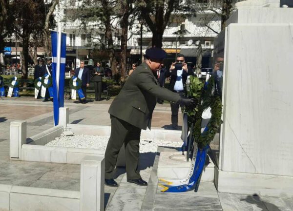 Ακολούθησε επιμνημόσυνη δέηση και κατάθεση στεφάνων στον Ανδριάντα του Αρχιστρατήγου Εμμανουήλ Παπά στην Πλατεία Ελευθερίας.