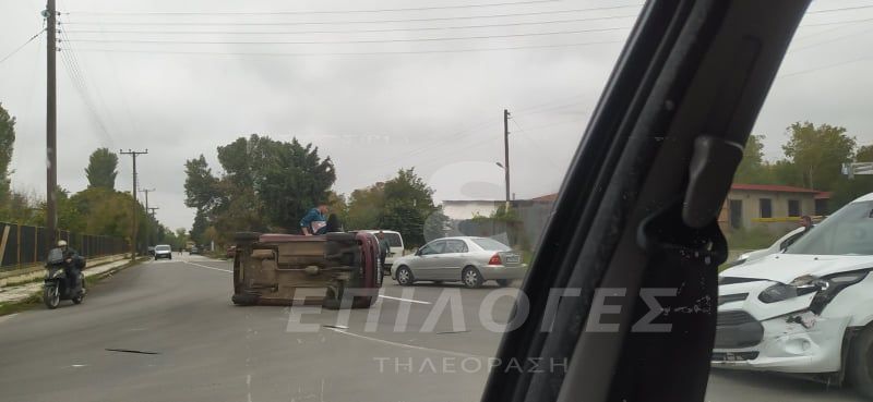 Από την σύγκρουση το ένα αυτοκίνητο ανετράπη. Ο οδηγός του αυτοκινήτου κατάφερε και βγήκε από το όχημά του, σκαρφαλώνοντας.