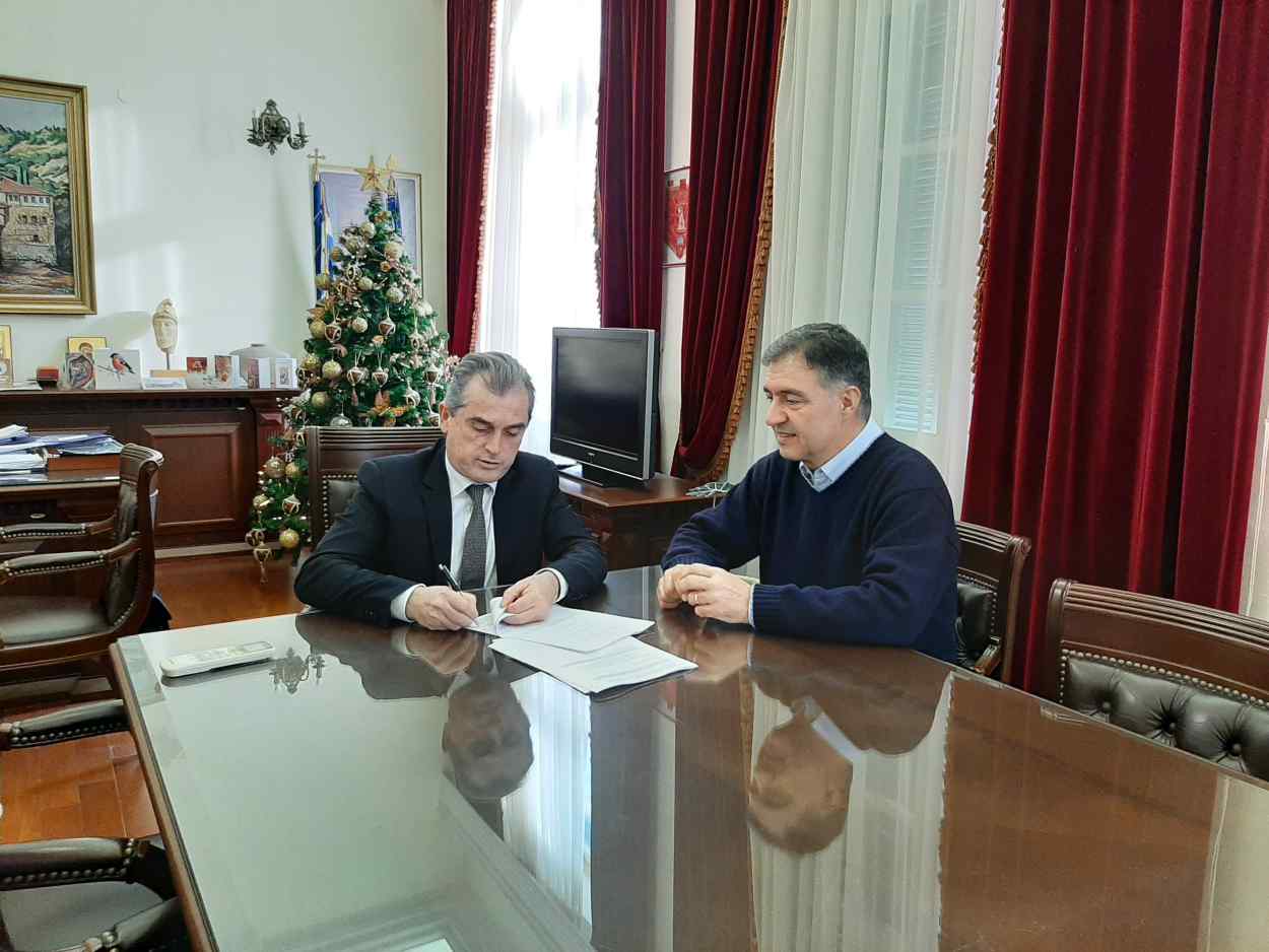 Οι δύο άνδρες συναντήθηκαν στο γραφείο του Αντιπεριφερειάρχη στο Διοικητήριο Σερρών, όπου και υπέγραψαν την προγραμματική σύμβαση, μετά την θετική ψήφο του Περιφερειακού Συμβουλίου Κεντρικής Μακεδονίας.