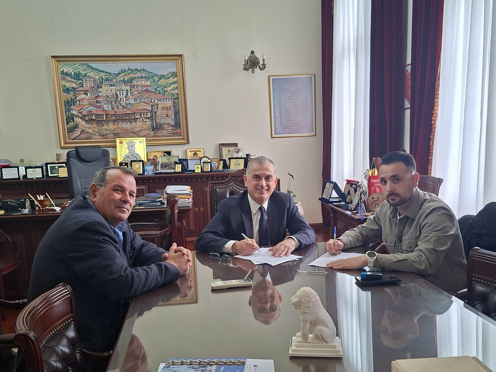 Υπογραφή σύμβασης για την εκτέλεση του έργου «Συντήρηση και επισκευή υφιστάμενων οδοστρωμάτων Εθνικού και Επαρχιακού οδικού δικτύου αρμοδιότητας της Π.Ε. Σερρών που χρήζουν άμεσης επέμβασης για το έτος 2025», προϋπολογισμού 1.150.000 ευρώ, πραγματοποιήθηκε μεταξύ του Αντιπεριφερειάρχη Σερρών Παναγιώτη Σπυρόπουλου και του εκπροσώπου της αναδόχου εργολαβικής εταιρείας.