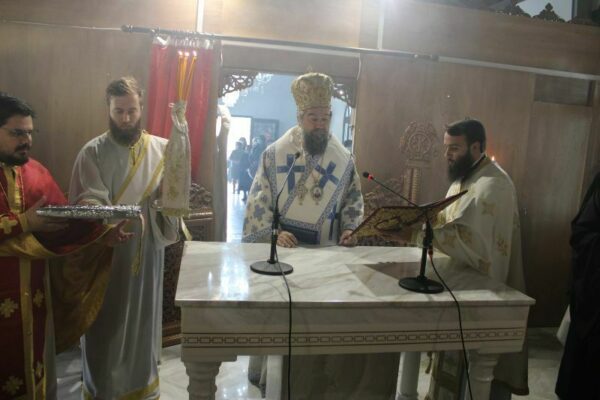 Προϊούσης της ιεράς ακολουθίας, ο Σεβ. κ. Θεολόγος ερμήνευε στους πιστούς τα τελούμενα και τον θεολογικό συμβολισμό τους. Μετά την τελετουργική ολοκλήρωση της εκπλύσεως δι’ ύδατος αγιασμένου και αρωμάτων, της μυρώσεως και της ενδύσεως διά του κατασαρκίου και των λοιπών ιερών αμφίων της αγίας Τραπέζης και του καθαγιασμού διά του αγίου Μύρου των ιερών αντιμηνσίων, εσυνεχίσθη η Αρχιερατική θ. Λειτουργία.