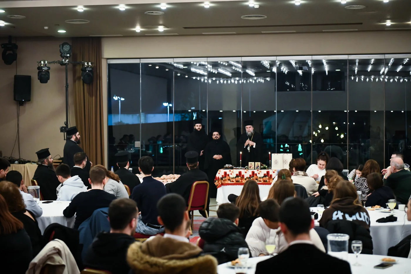 Στην συνέχεια, στις 8:00 το βράδυ, ο Σεβασμιώτατος παρευρέθηκε στην σύναξη φοιτητριών και φοιτητών – νέων, που πραγματοποιήθηκε με την φροντίδα του Γραφείου Νεότητος στο ξενοδοχείο «ELPIDA RESORT» των Σερρών. Η προσέλευση των νέων για μία ακόμη χρονιά υπήρξε εντυπωσιακή και συγκινητική.