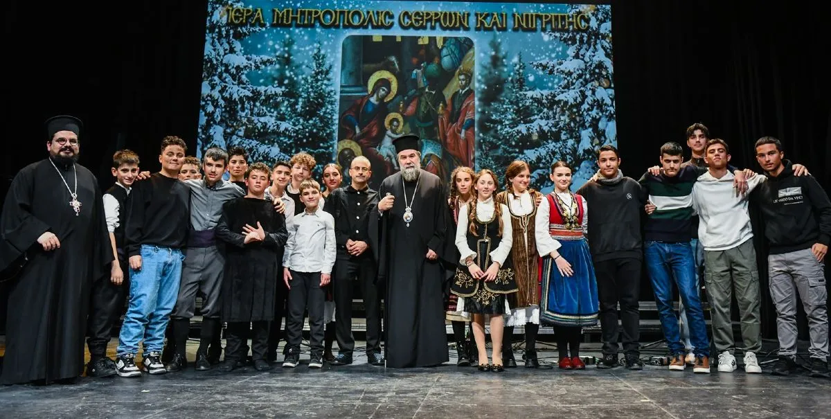 Μέσα στο όμορφο και εορταστικό κλίμα των ημερών, πραγματοποιήθηκε, για μία ακόμη χρονιά, η μεγάλη χριστουγεννιάτικη εορτή των κατηχητικών Συνάξεων της κατά Σέρρας και Νιγρίτα Εκκλησίας, την Παρασκευή 19 Δεκεμβρίου 2025, στις 7:30 το απόγευμα, στο αμφιθέατρο «ΑΣΤΕΡΙΑ» του ΔΗ.ΠΕ.ΘΕ. Σερρών, την οποία παρακολούθησαν, μεταξύ άλλων και η Βουλευτής Ν. Σερρών κ. Φωτεινή Αραμπατζή, η Δήμαρχος Σερραίων κ. Βαρβάρα Μητλιάγκα, αντιδήμαρχοι του Δήμου Σερρών, εκπρόσωπος του Διοικητού της 10ης Μηχανοποιημένης Ταξιαρχίας Σερρών και πλήθος κόσμου, που κατέκλυσαν την μεγάλη αίθουσα του κινηματοθεάτρου.