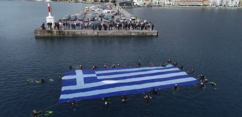 Αυτή τη φορά η σημαία απλώθηκε στον κόλπο του Βαθέως στη Σάμο, από τον Σύλλογο Αυτοδυτών Σάμου, καθώς και δύτες του λιμεναρχείου του νησιού.
