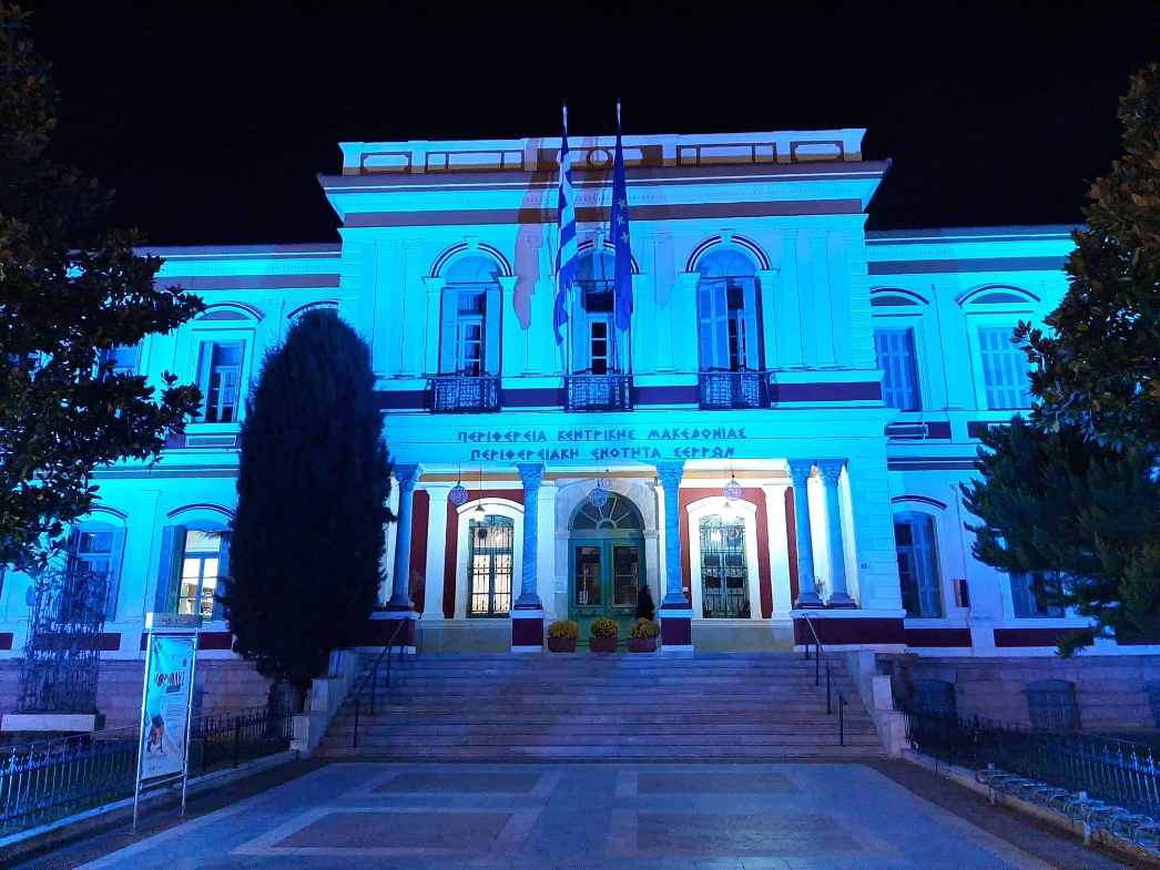 Το Διοικητήριο της Περιφερειακής Ενότητας Σερρών φωτίστηκε γαλάζιο, στο πλαίσιο της Παγκόσμιας Ημέρας Διαβήτη.