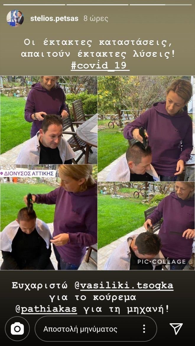Υστερα από 14 ημέρες κοινωνικής απόστασης, ο Στέλιος Πέτσας πήρε τη μεγάλη απόφαση και κουρεύτηκε σπίτι.