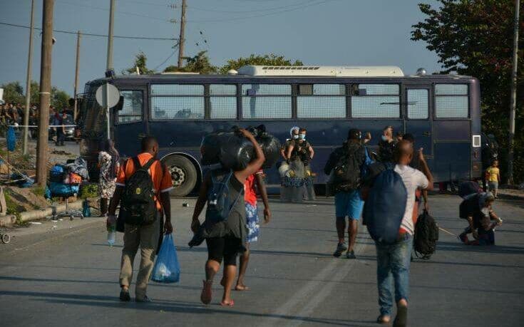 Σε πλήρη εξέλιξη είναι η επιχείρηση για τη μεταφορά μεταναστών και προσφύγων στο Καρά Τεπέ, έπειτα από την φωτιά στον καταυλισμό της Μόριας.