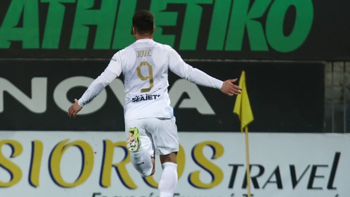 Ο Σταύρος Πήλιος πήρε την μπάλα από τον Καλτσά, διέσχισε όλη την αριστερή πτέρυγα, έδωσε στον Μπαρνάμπας Βάργκα, αυτός στον Γιόβιτς κι ο Σέρβος με τρομερό αριστερό σουτ από το ύψος της μεγάλης περιοχής άνοιξε το σκορ, με το 12ο γκολ του στη Super League. Μάλιστα, η Ένωση θα μπορούσε να «κλείσει» το ημίχρονο με προβάδισμα δύο τερμάτων, αλλά η κεφαλιά του Βάργκα μετά τη σέντρα του Λάζαρου Ρότα πέρασε δίπλα από το δεξί δοκάρι.