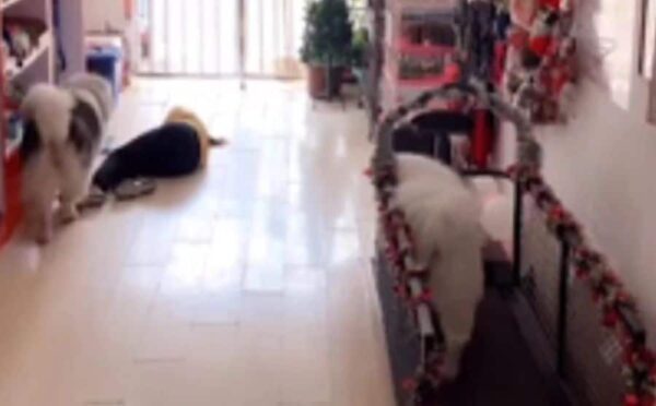 Το περιστατικό καταγράφηκε στις 18 Απριλίου. Η εργαζόμενη στο pet shop, το όνομα της οποίας δεν έχει γίνει γνωστό, λιποθυμάει μέσα στο μαγαζί και εκείνη την ώρα δύο χάσκι βρίσκονται μέσα σε αυτό.