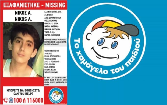 Στις 24/08/2020, μεσημεριανές ώρες, εξαφανίστηκε από την περιοχή Σταυρούπολη της Θεσσαλονίκης, ο Νίκος Α., 13 ετών.