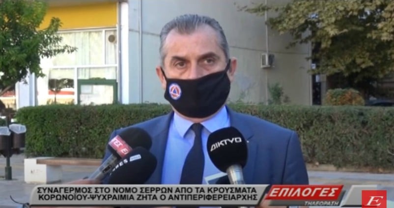 Συναγερμός έχει σημάνει στην αντιπεριφέρεια Σερρών και σε μήνυμά του ο αντιπεριφερειάρχης ζητά ψυχραιμία από όλους και κυρίως να τηρούν όπως είπε με θρησκευτική ευλάβεια τα μέτρα κατά του κορωνοϊού