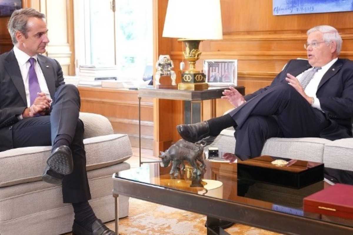 Ο Πρωθυπουργός Κυριάκος Μητσοτάκης συναντήθηκε, στο Μέγαρο Μαξίμου, με τον Πρόεδρο της Επιτροπής Εξωτερικών Σχέσεων της Γερουσίας των Ηνωμένων Πολιτειών, Robert Menendez, λίγο πριν από την αναγόρευσή του Αμερικανού Γερουσιαστή σε Επίτιμο Διδάκτορα του ΕΚΠΑ.