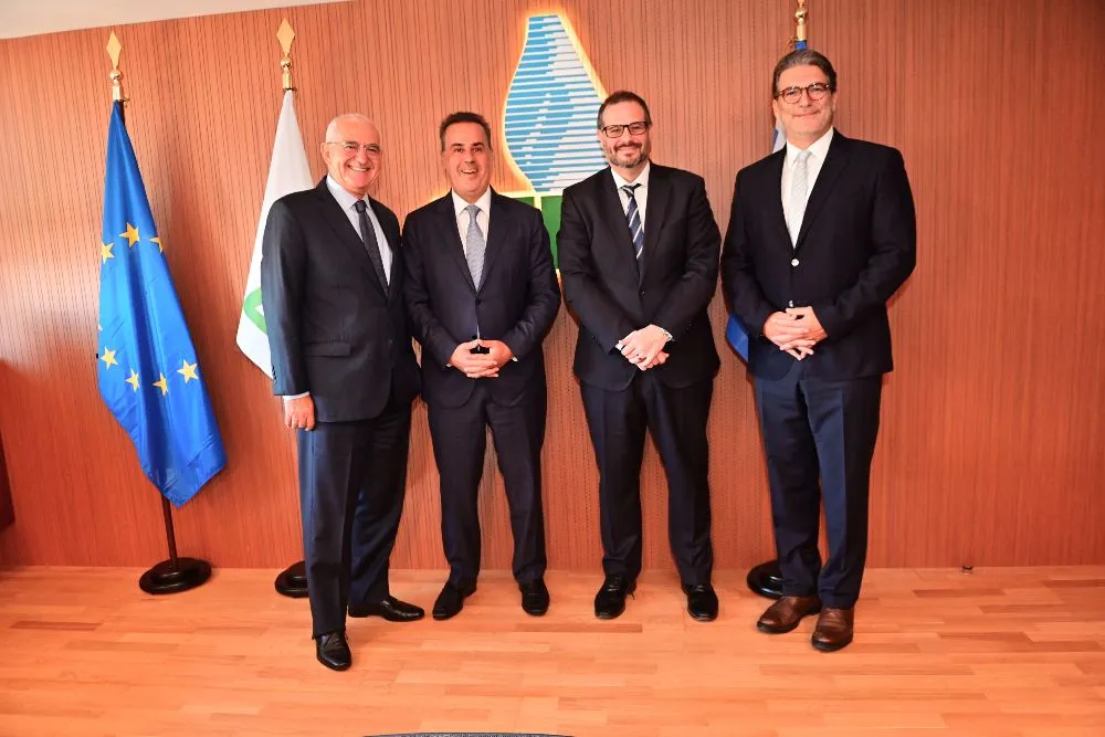 Συνάντηση εργασίας πραγματοποιήθηκε σε εξαιρετικό κλίμα στα κεντρικά γραφεία της ΔΕΠΑ Εμπορίας, μεταξύ του Υπουργού Περιβάλλοντος και Ενέργειας, κ. Σταύρου Παπασταύρου, του Υφυπουργού κ. Νίκου Τσάφου και της Διοίκησης της ΔΕΠΑ Εμπορίας, με επικεφαλής τον Πρόεδρο του Διοικητικού Συμβουλίου, κ.Αντώνιο Διαματάρη και τον Διευθύνοντα Σύμβουλο, κ. Κωνσταντίνο Ξιφαρά.