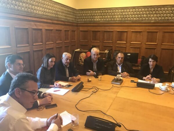 Aντιπροσωπεία βουλευτών του ΣΥΡΙΖΑ αποτελούμενη από την Έφη Αχτσιόγλου, τομεάρχη Εργασίας και Κοινωνικής Ασφάλισης, τον Αλέκο Φλαμπουράρη συντονιστή ΕΠΕΚΕ, τον Διονύση Καλαματιανό, τη Σουλτάνα Ελευθεριάδου, τον Τάκη Χαρίτου και τον ευρωβουλευτή Κώστα Αρβανίτη, συναντήθηκε στη Βουλή με αντιπροσωπεία των εργαζομένων στα Λιπάσματα Καβάλας.