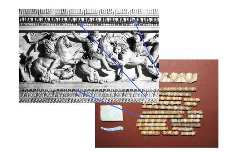 (Οστέινα και γυάλινα διακοσμητικά στοιχεία φερέτρου που βρέθηκαν στον τάφο της Αμφίπολης)