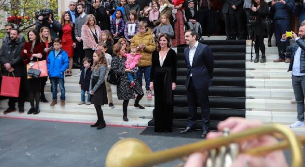 τα πρωτοχρονιάτικα κάλαντα προς τιμή του Αλέξη Τσίπρα ο οποίος υποδέχτηκε τους προσκεκλημένους του στον κήπο του Μεγάρου Μαξίμου.
