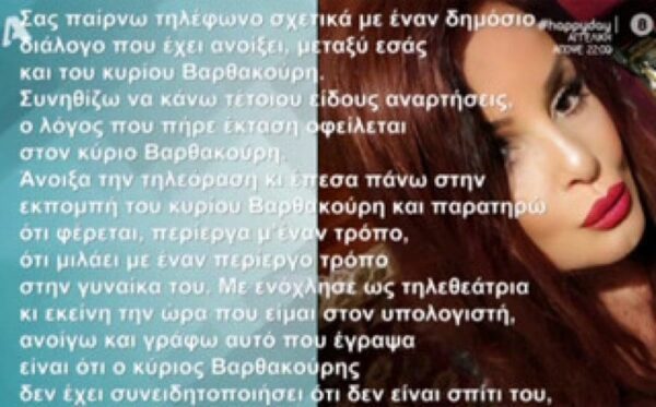 Η συγγραφέας τόνισε ότι έστειλε μήνυμα στον παρουσιαστή και εκείνος δεν της απάντησε Για τα διαδικτυακά «πυρά» τα οποία ανταλλάσουν με τον Χάρη Βαρθακούρη αναφέρθηκε η Χρυσηίδα Δημουλίδου σε τηλεφωνική ...