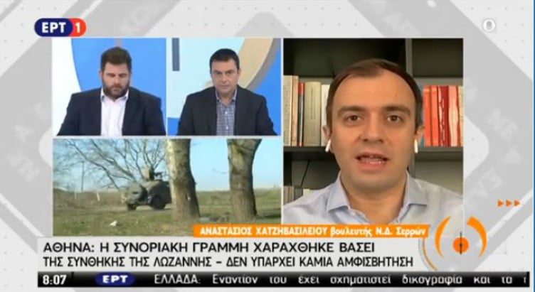 Ο βουλευτής Ν. Σερρών της ΝΔ Τάσος Χατζηβασιλείου μίλησε στην εκπομπή «Από τις έξι» της ΕΡΤ1 για τους ψευδείς ισχυρισμούς της Τουρκίας περί αμφισβήτησης της συνοριακής γραμμής στον Έβρο.