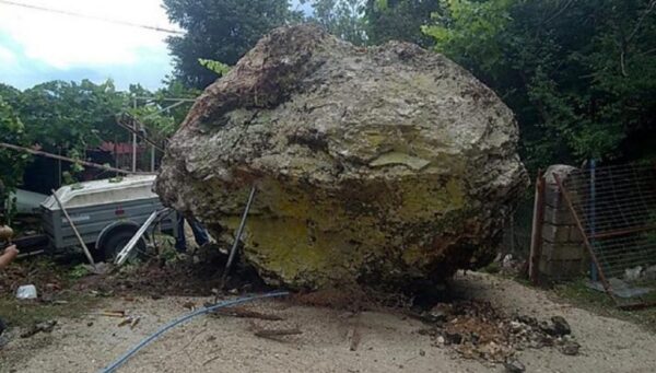 Ο βράχος στάθηκε σε απόσταση μικρότερη των δύο μέτρων από το αυτοκίνητο που βρίσκονταν παρκαρισμένο και φυσικά σε απόσταση αναπνοής από το σπίτι..