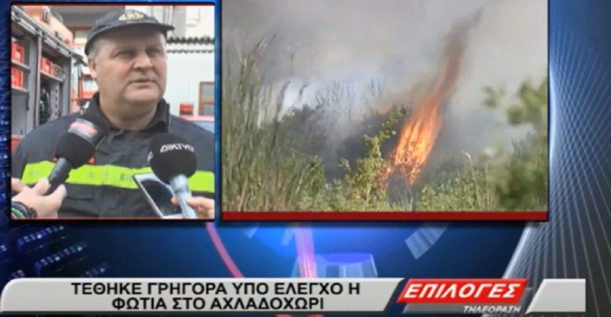 Εντωμεταξύ νωρίς το μεσημέρι εκδηλώθηκε φωτιά σε αγροτική έκταση στο Αχλαδοχώρι και σήμανε συναγερμός στην πυροσβεστική υπηρεσία καθώς στο σημείο έπνεαν δυνατοί άνεμοι