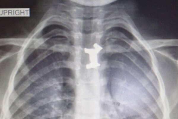 Χαρακτηριστικές είναι οι φωτογραφίες που δείχνου το σημείο όπου σταμάτησε το μεταλλικό αντικείμενο στον οισοφάγο του παιδιού: