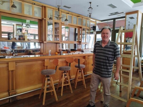 Οι ξύλινες καρέκλες με τη γκρι επένδυση έμειναν για πρώτη φορά, μετά από δύο και πλέον δεκαετίες, σε έναν άδειο χώρο, χωρίς θαμώνες. Παραμένουν τα τραπέζια, με τα οποία κάνουν σετ, αλλά κι αυτά χωρίς ποτά και τα προσωπικά αντικείμενα των πελατών.