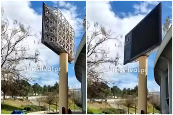 Οι ισχυροί άνεμοι που πνέουν από το πρωί στη Θεσσαλονίκη δημιούργησαν πρόβλημα στον φωτεινό πίνακα του κεντρικού γηπέδου του Καυταντζογλείου Σταδίου ο οποίος περιστρεφόταν γύρω από τον πυλώνα στήριξής του, λόγω θραύσης του πύρου ακινητοποίησής του, αναφέρεται σε ανακοίνωση της διοίκησης του Σταδίου.