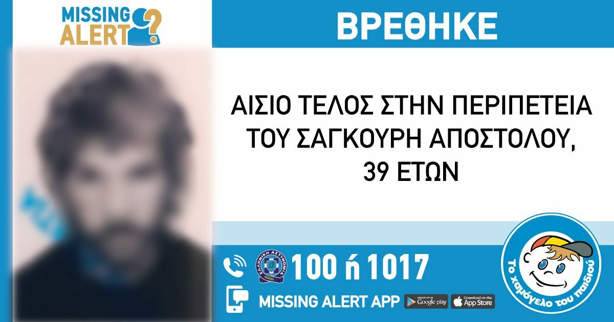 Η περιπέτεια του Σαγκούρη Απόστολου, 39 ετών, έληξε σήμερα 4/12/2021 δίνοντας τέλος στην αγωνία των δικών του ανθρώπων που τον αναζητούσαν.