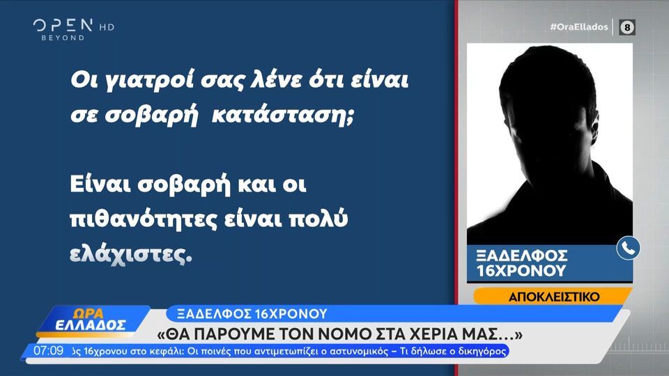 Μιλώντας για τη γυναίκα του 16χρονου είπε ότι είναι σε τραγική κατάσταση. «Η γυναίκα του είναι από όλους σε χειρότερη κατάσταση. Δεν μιλάει με κανέναν, είναι κλεισμένη, δεν μπορεί να την παρηγορήσει τίποτα, κλαίει πάνω στο παιδάκι της γιατί ξέρει τι θα αντιμετωπίσουμε. Μας λένε οι γιατροί δεν έχουμε ελπίδες» είπε.