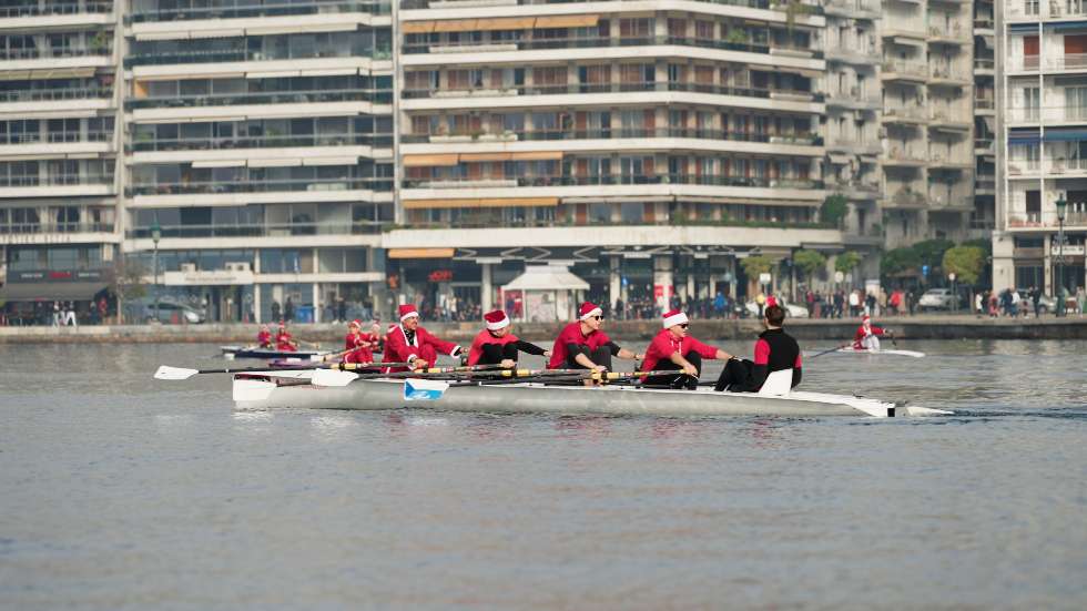 Για έκτη χρόνια ενήλικες κωπηλάτες του τμήματος Παράκτιας Κωπηλασίας του Ομίλου Φίλων Θαλάσσης ( Coastal rowing club Thessaloniki) , ντυμένοι ως Άι Βασίληδες έφεραν τα Χριστούγεννα δια θαλάσσης!!!