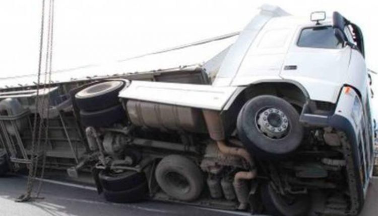 Συγκεκριμένα από άγνωστη μέχρι στιγμής αιτία, μια νταλίκα δίπλωσε στο Δερβένι έξω από την Θεσσαλονίκη