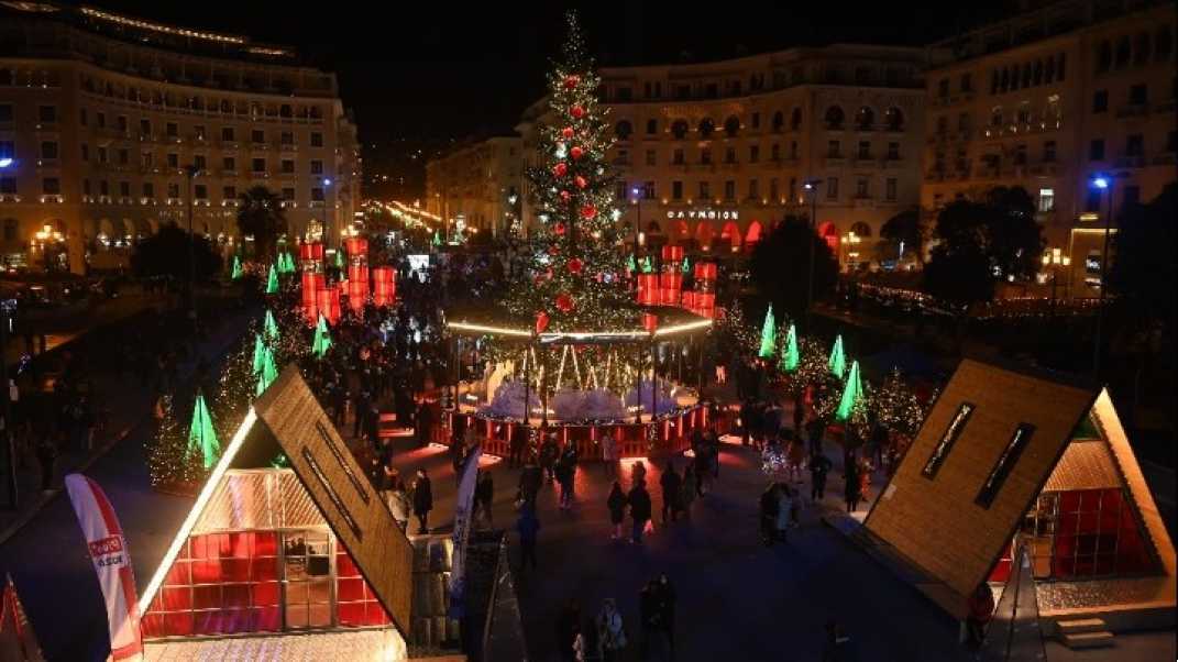 Τα γιορτινά τους φόρεσαν απόψε η πλατεία και ο οδικός άξονα της Αριστοτέλους, καθώς φωταγωγήθηκαν από τον Δήμο Θεσσαλονίκης ενόψει των Χριστουγέννων και της Πρωτοχρονιάς.