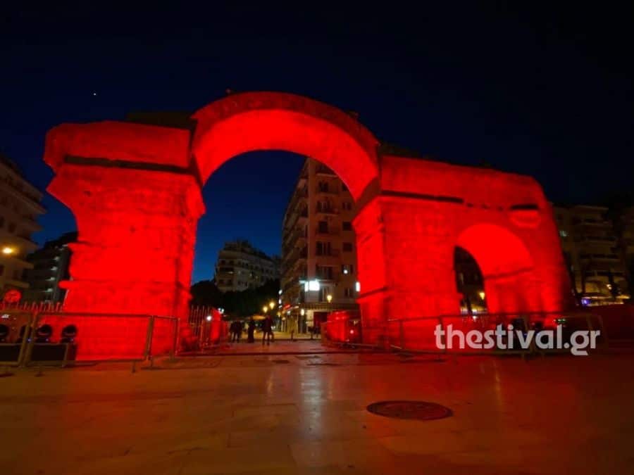 Στον φωτισμό της Αψίδας του Γαλερίου, για συμβολικούς λόγους, προχώρησε το βράδυ της Μεγάλης Πέμπτης ο Δήμος Θεσσαλονίκης.