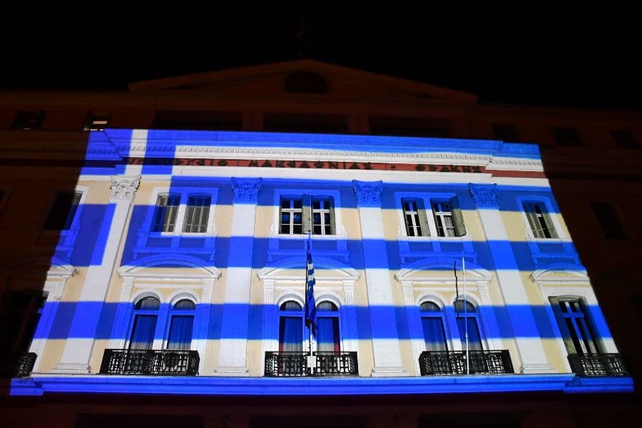 Στα γαλανόλευκα ντύθηκε, απόψε, το Διοικητήριο. Το Υπουργείο Εσωτερικών (Τομέας Μακεδονίας – Θράκης) συμμετέχει στους εορτασμούς για τα 200 χρόνια από την Επανάσταση του 1821 με ένα πρωτότυπο projection mapping. Στην πρόσοψη του ιστορικού κτιρίου του Διοικητηρίου προβάλλεται μια τεράστια Γαλανόλευκη.