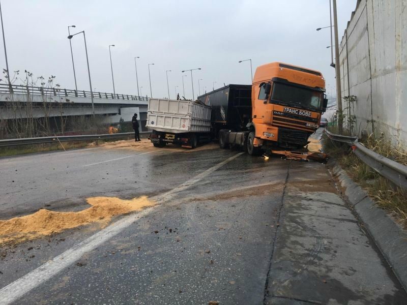 Ο οδηγός μιας νταλίκας που μετέφερε σιτηρά, έχασε τον έλεγχο του οχήματος, στο ύψος του Τιτάν, στην έξοδο για Αθήνα, λόγω της ολισθηρότητας του δρόμου, προσέκρουσε στα κιγκλιδώματα και εξετράπη της πορείας της.