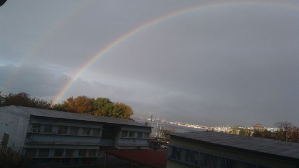 Ήταν ένα μαγευτικό θέαμα και οι τυχεροί που το αντίκρισαν, δεν μπορεί παρά να παρακαλούσαν να μείνει ακόμα λίγο, ακόμα μια στιγμή, για να χαρούν την τόση ομορφιά, τα χρώματα τα ουράνια, τα γλυκά. Να ήταν, άραγε, η σημερινή εμφάνιση του ουράνιου τόξου στους αιθέρες και ένα μήνυμα ελπίδας ότι η «φουρτούνα» της πανδημίας που σαρώνει την κοινωνία (και) της Θεσσαλονίκης και γκριζάρει τις ψυχές των ανθρώπων, οδεύει προς το τέλος της; Ας το διαβάσει κανείς και έτσι. Η εικόνα πάντως του ουρανού ζωσμένου με τα χρώματα της ίριδας, γλύκανε κάπως, για λίγο έστω, τις καρδιές μας.