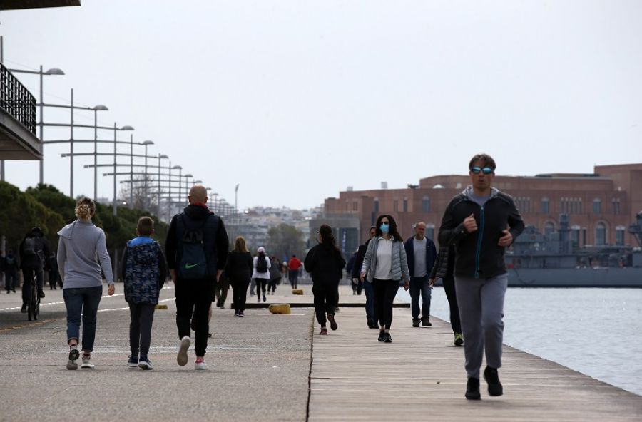 Οι καιρικές συνθήκες το επέτρεψαν και πολλοί Θεσσαλονικείς όλων των ηλικιών βγήκαν για την Κυριακάτικη τους βόλτα στη Νέα Παραλία της πόλης.