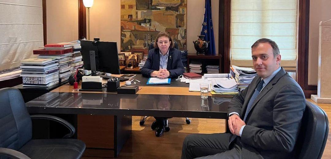Συνάντηση με την Υπουργό Πολιτισμού και Αθλητισμού Λίνα Μενδώνη είχε τη Δευτέρα ο βουλευτής Σερρών και Γραμματέας Διεθνών Σχέσεων της ΝΔ, στην Αθήνα, όπου και συζήτησαν αναλυτικά για θέματα πολιτισμού της Π.Ε. Σερρών.