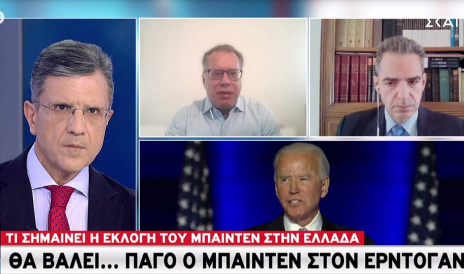 Την νίκη Μπάιντεν στις εκλογές των ΗΠΑ και την σημασία της για την Ελλάδα σχολίασαν μεταξύ άλλων ο αναπληρωτής υπουργός μετανάστευσης Γιώργος Κουμουτσάκος και ο ο καθηγητής Διεθνούς Δικαίου και Εξωτερικής Πολιτικής στο Πάντειο Πανεπιστήμιο και βουλευτής της ΝΔ, Άγγελος Συρίγος μιλώντας στην τηλεόραση του ΣΚΑΙ.