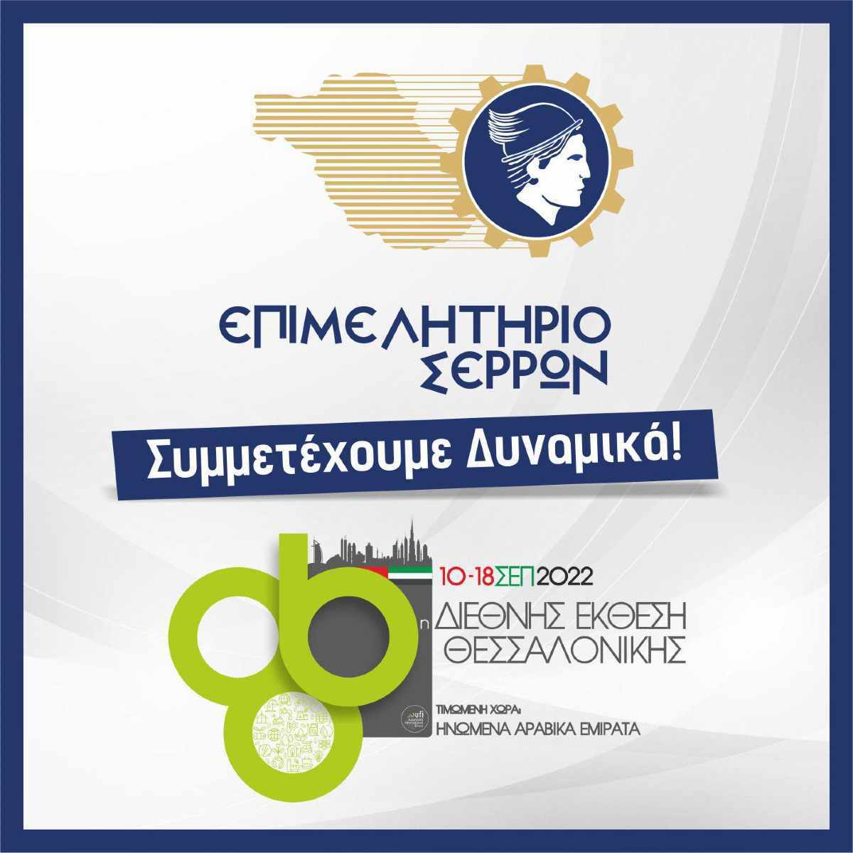 Πρόσκληση σε όλους τους Σερραίους να επισκεφτούν την 86η Διεθνή Έκθεση Θεσσαλονίκης (10-18 Σεπτεμβρίου 2022) απευθύνει το Επιμελητήριο Σερρών, το οποίο θα συμμετέχει στο Περίπτερο 3 της Κεντρικής Ένωσης Επιμελητηρίων Ελλάδος, μαζί με πολλές σερραϊκές επιχειρήσεις που έχουν εκδηλώσει ενδιαφέρον και θα βρίσκονται εκεί.